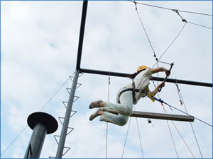 參與者站在離地7米的空中,在前方一臂以外的空中,懸著一根單杠。參與者要做的,是從跳臺上凌空躍起,抓住那根單杠。