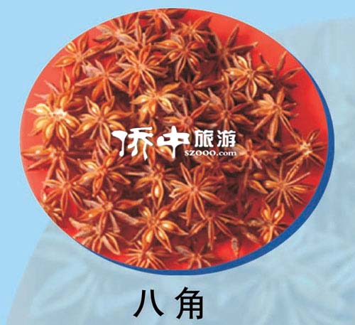 土特產(chǎn)八角,應(yīng)該是眾所皆知的了,八角是它的學(xué)名,它有一種更通俗的別稱叫“大料”。當(dāng)然它還有諸多的俗稱,比如:大茴香。之所以,有這么多的稱呼是因?yàn)榘私沁€是中藥的一種(中藥通常都有不少的名頭),具有溫陽散寒,理氣止痛的功效。就連我們?nèi)粘K玫南闼?、牙膏、香皂、化妝品中也經(jīng)常添加了八角的提取物。用途還真是挺廣泛呢!直到近些年來流感橫行,人們才逐漸意識(shí)到與其去吃“八角”提取的抗流感藥物達(dá)菲,還不如做菜的時(shí)候多加入一些八角以食療來抵抗疾病,于是乎八角瞬間成了好東西,被人們熱捧起來。
