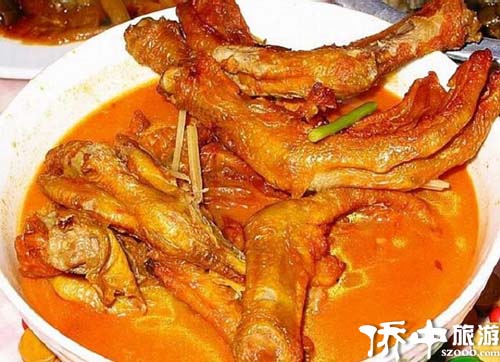 蠔油柚皮鴨以柚子皮(酸柚皮更為細軟嫩滑)做菜,做時,柚皮要先經炭火烤糊,再打磨干凈,并置清水中浸泡,以去掉其苦澀味,鴨子則過熱水晾干,上醬油,炸至金黃色,用文火燜至適度,再把切好的鴨子和柚皮放進銅鍋,配以豬油、雞骨、鯪魚及蠔油等調料煮至入味而成。