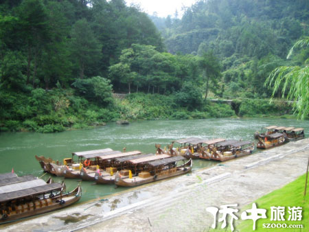 坐上輕捷的木船抑或橡皮艇,漂游資江,順流而下,可見整條江水清澈,猶如一面明鏡,兩岸風(fēng)光集幽、險(xiǎn)、秀、奇于一體。漂游資江要下45條灘,拐31個(gè)灣,一路風(fēng)光無限,臨江聳立高接云天的“風(fēng)帆石”、近似浮雕的“神象飲水”、比“樂山大佛”大10倍的“花和尚”、威嚴(yán)雄奇的“將軍騎馬鎮(zhèn)天門”、壁立萬仞的“一線天”等,大大小小36處景點(diǎn),峰巒奇秀絕美,別具一格,宛如觀賞11千米長的山水畫廊。這里片片田野村舍,遠(yuǎn)山滿嶺青松嫩杉,翠竹叢叢,近處柳樹垂條,山花點(diǎn)點(diǎn),鮮艷奪目,一派森然翠綠。資江真是幽意盎然,古樸清麗。此情此景,使人的思緒飛進(jìn)傳說中的“桃花源”里,盡情領(lǐng)略,如醉如癡。