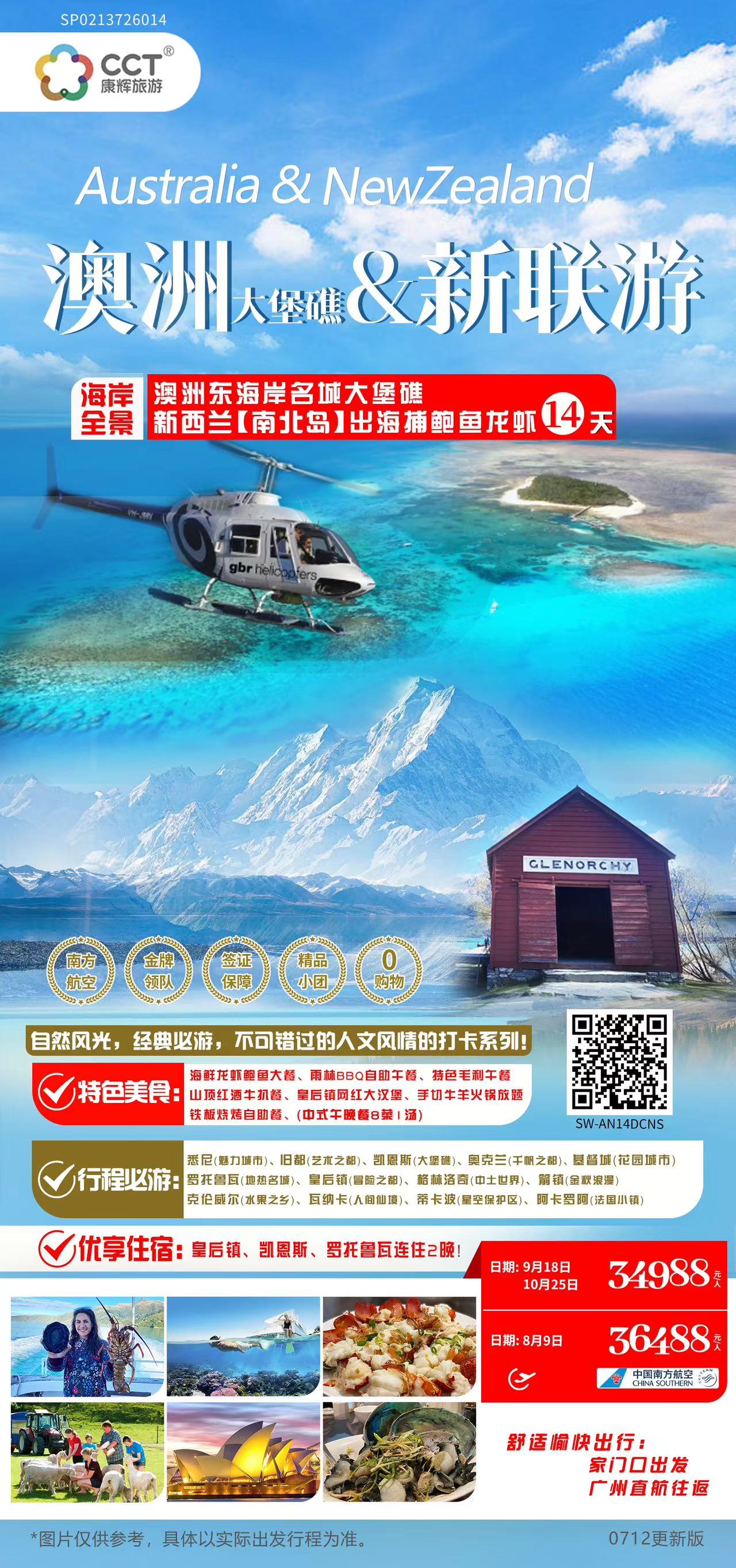 廣州直飛往返,全國(guó)聯(lián)運(yùn)。澳洲入,新西蘭出,不走回頭路