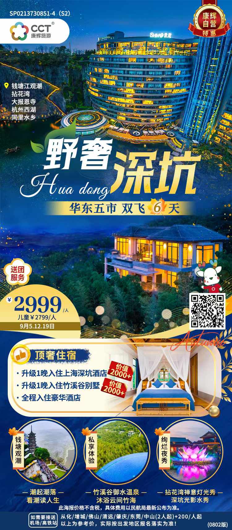 <特惠野奢深坑>廣州往返上海深坑+御水溫泉·竹溪谷,錢(qián)塘江觀潮,拈花灣雙飛6天