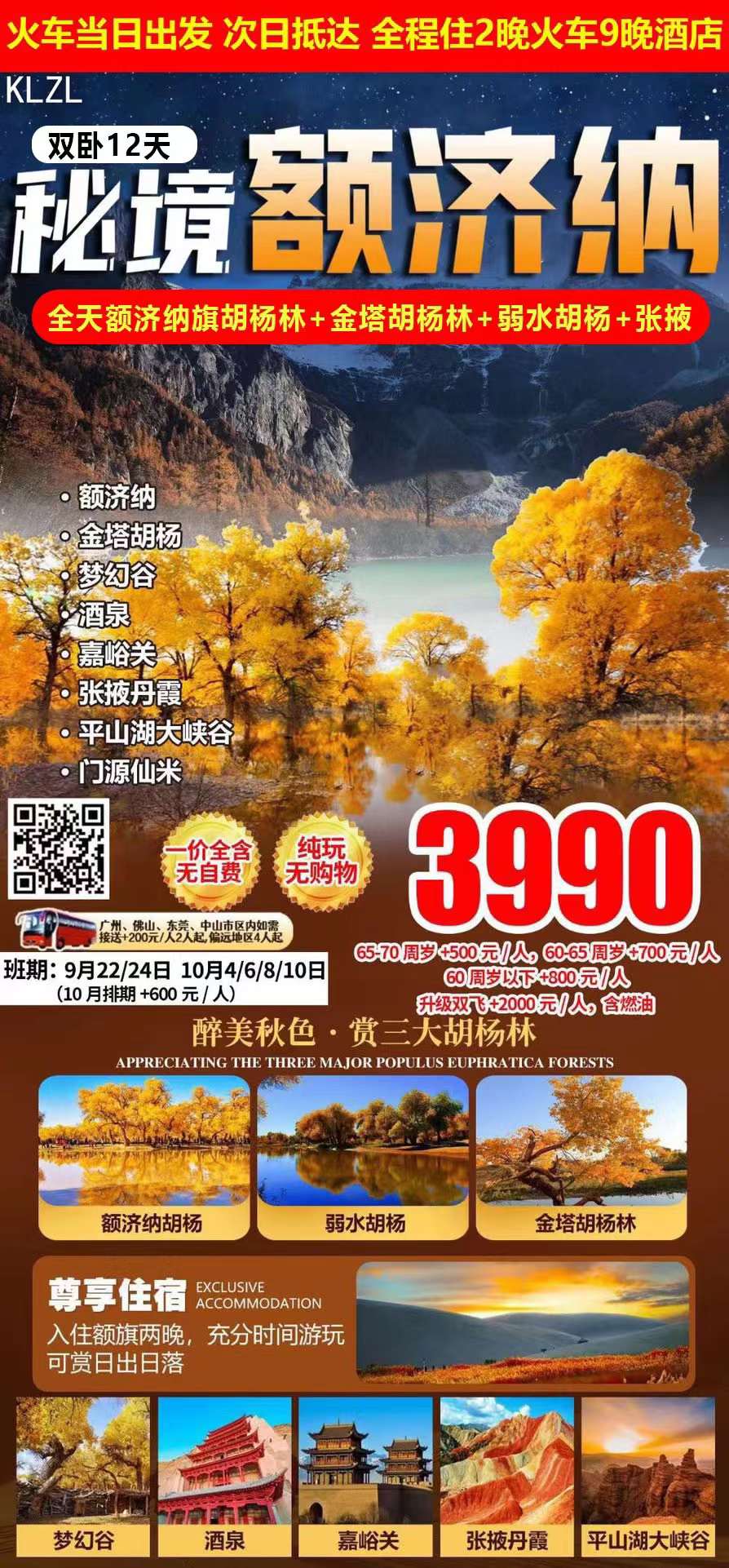 特別安排“額濟(jì)納胡楊”“弱水胡楊”“金塔胡楊林”三大景區(qū),體驗(yàn)醉美秋色