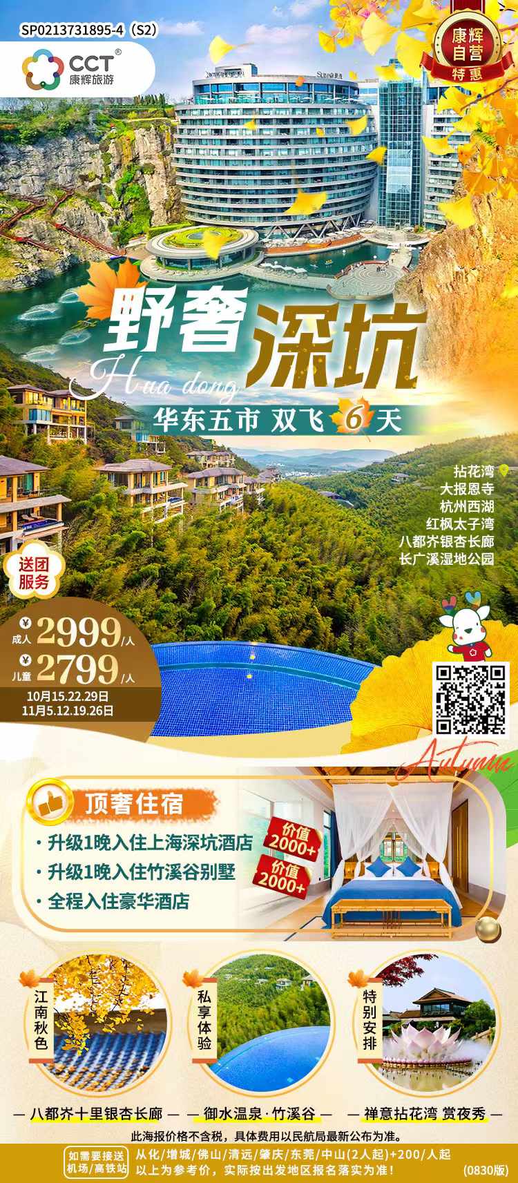 <野奢深坑>廣州往返上海深坑+御水溫泉竹溪谷,八都岕銀杏長(zhǎng)廊,拈花灣雙飛6天
