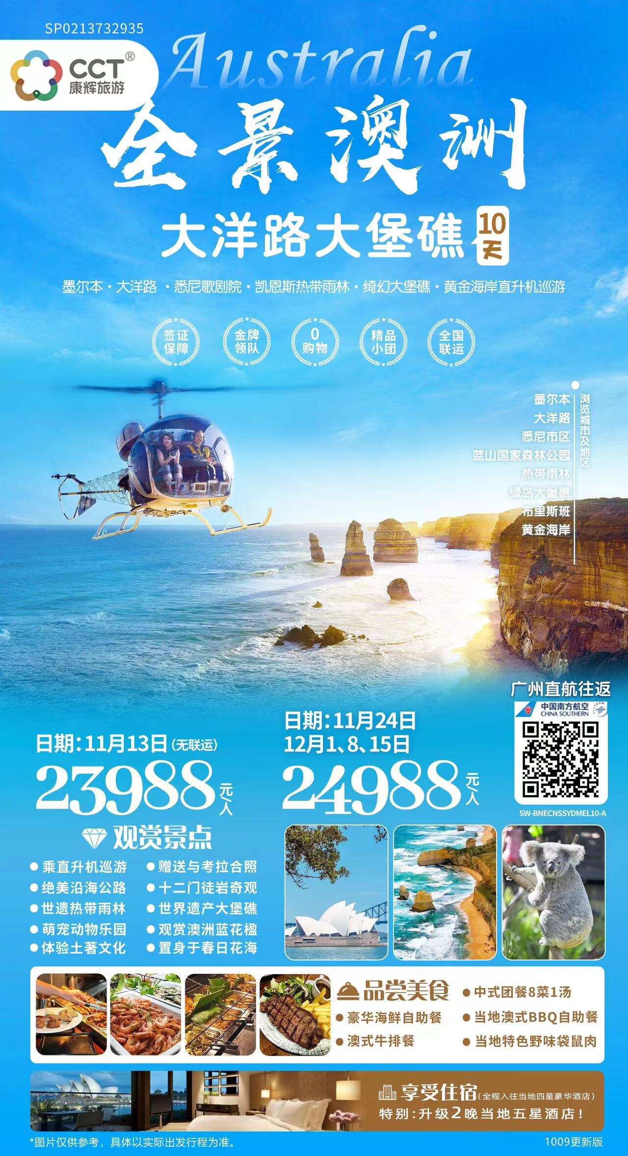 澳洲大洋路+大堡礁【海陸空】巡游全景10天