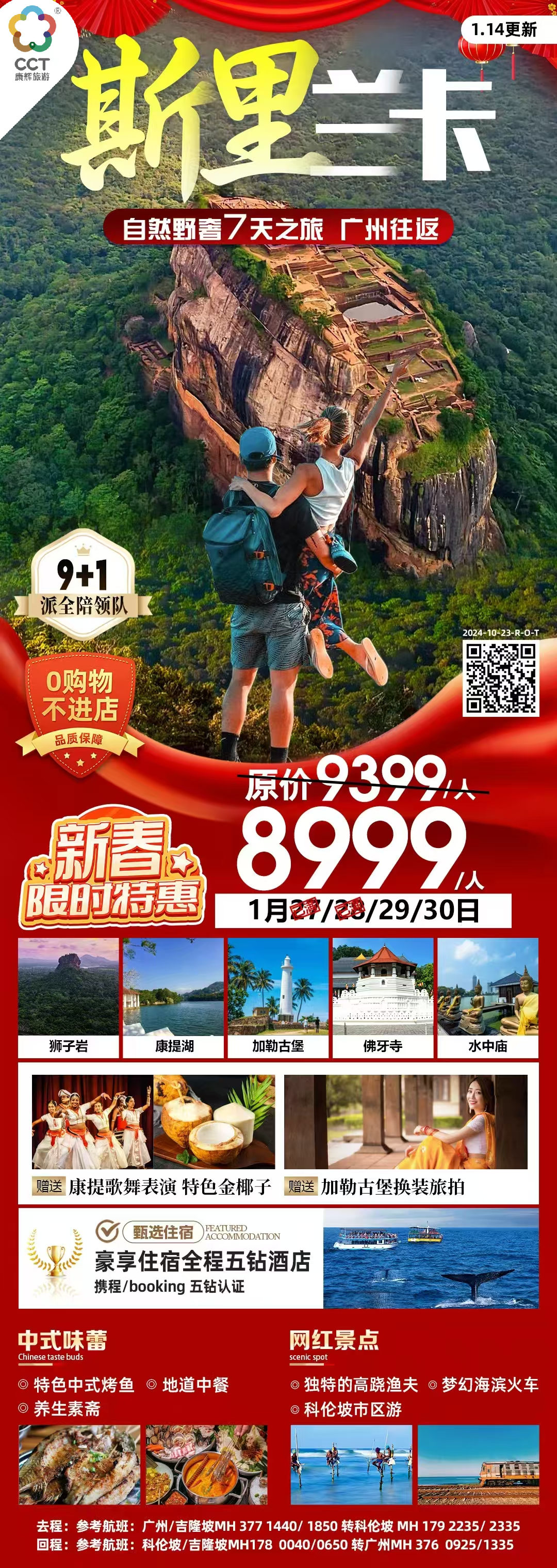 多彩錫蘭 :贈(zèng)送康提民族歌舞表演,加勒古堡換裝旅拍,特色金椰子