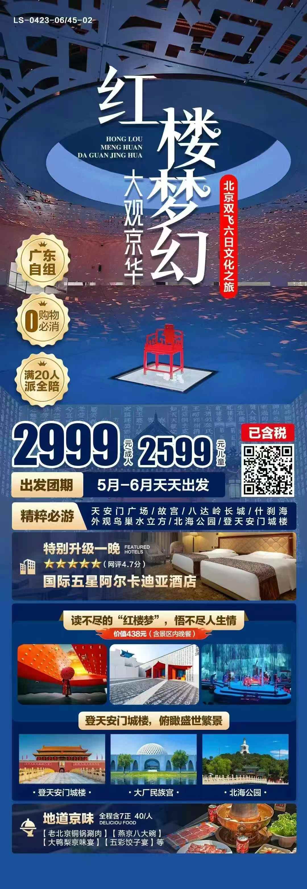 6月廣州飛【紅樓夢幻&大觀京華】北京雙飛六天文化之旅