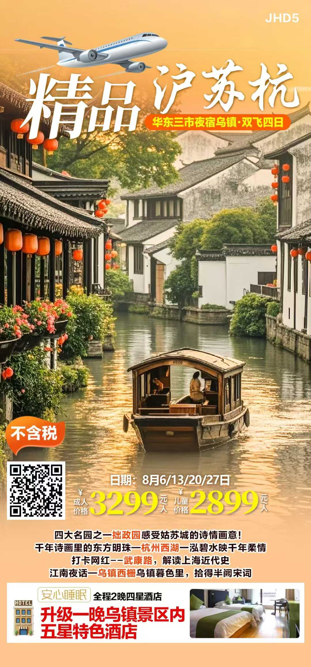 【精品滬蘇杭】華東三市+夜宿烏鎮(zhèn)雙飛四日