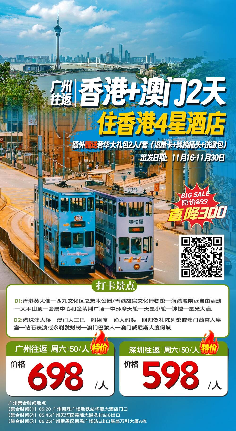 深圳往返|周六+50/人特價598價格/人