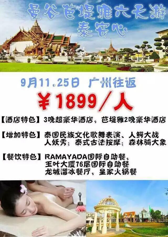 (哇,泰國特價(jià)了1899元/人 廣州往返喲,你沒看錯(cuò),對,就是1899元廣州往返泰國6天團(tuán))