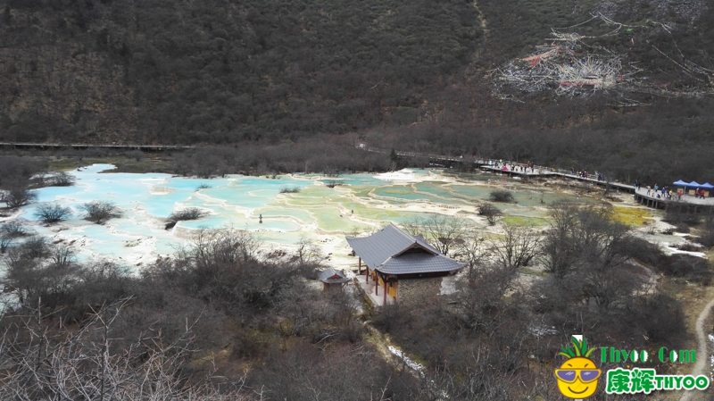(黃龍五彩池,在雪山下 很漂亮)