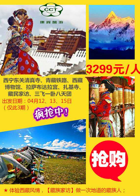 4月康輝特價來了,我公司國內(nèi)部線路多多,西藏 云南 華東 四川九寨常年買斷機位,保證出團。價格實惠。歡迎來到咨詢。