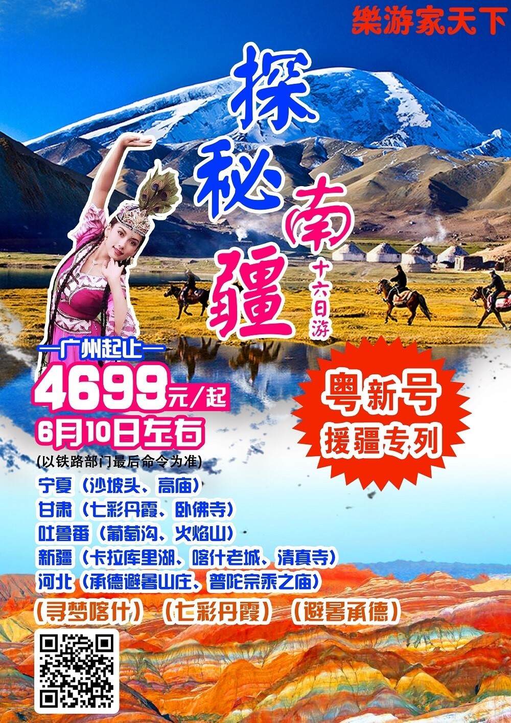 5.20東北專列、6.10粵新號(hào)援疆專列、6.21西北六省專列、6.27東北+漠河北極村專列火熱上線 所有專列廣州始發(fā),經(jīng)停韶關(guān)東!根據(jù)各自需求下載圖片!溫馨提示:5.10西北專列軟臥硬臥均已收滿,后續(xù)還有想報(bào)西北專列的客人請(qǐng)安排到6.21的西北專列,多謝大家的合作