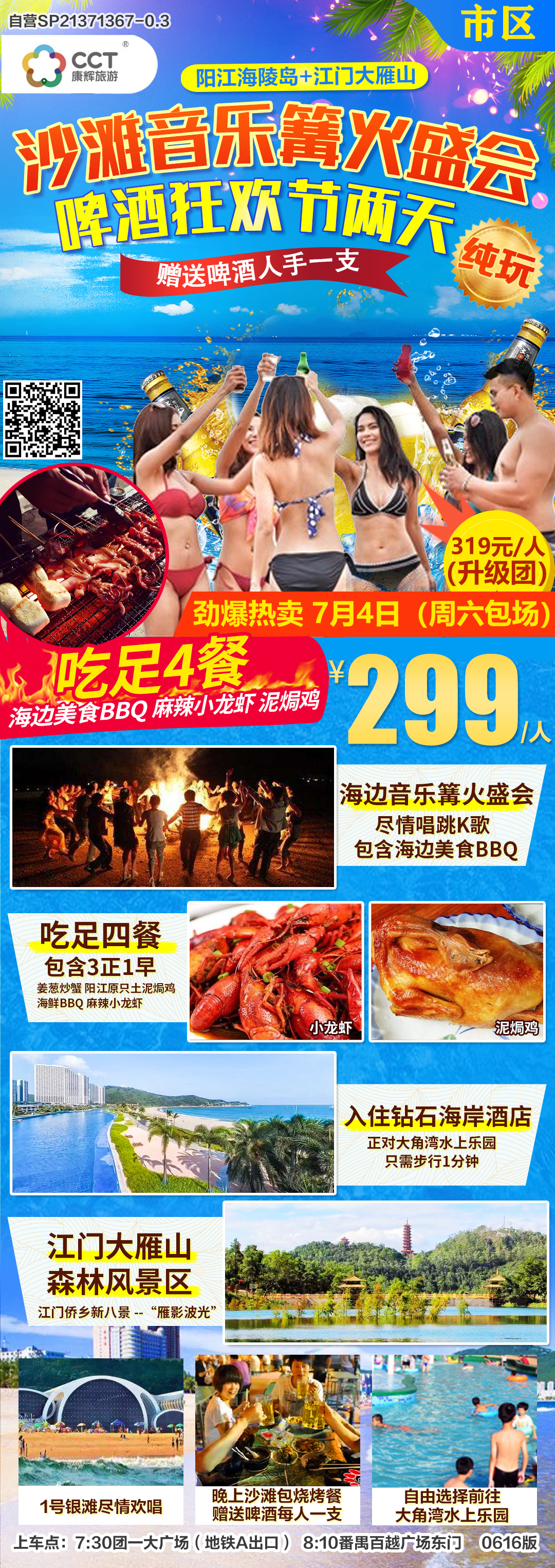 陽(yáng)江海陵島沙灘音樂(lè)篝火盛會(huì)*啤酒狂歡節(jié)+江門大雁山風(fēng)景區(qū)"森"呼吸純玩兩天