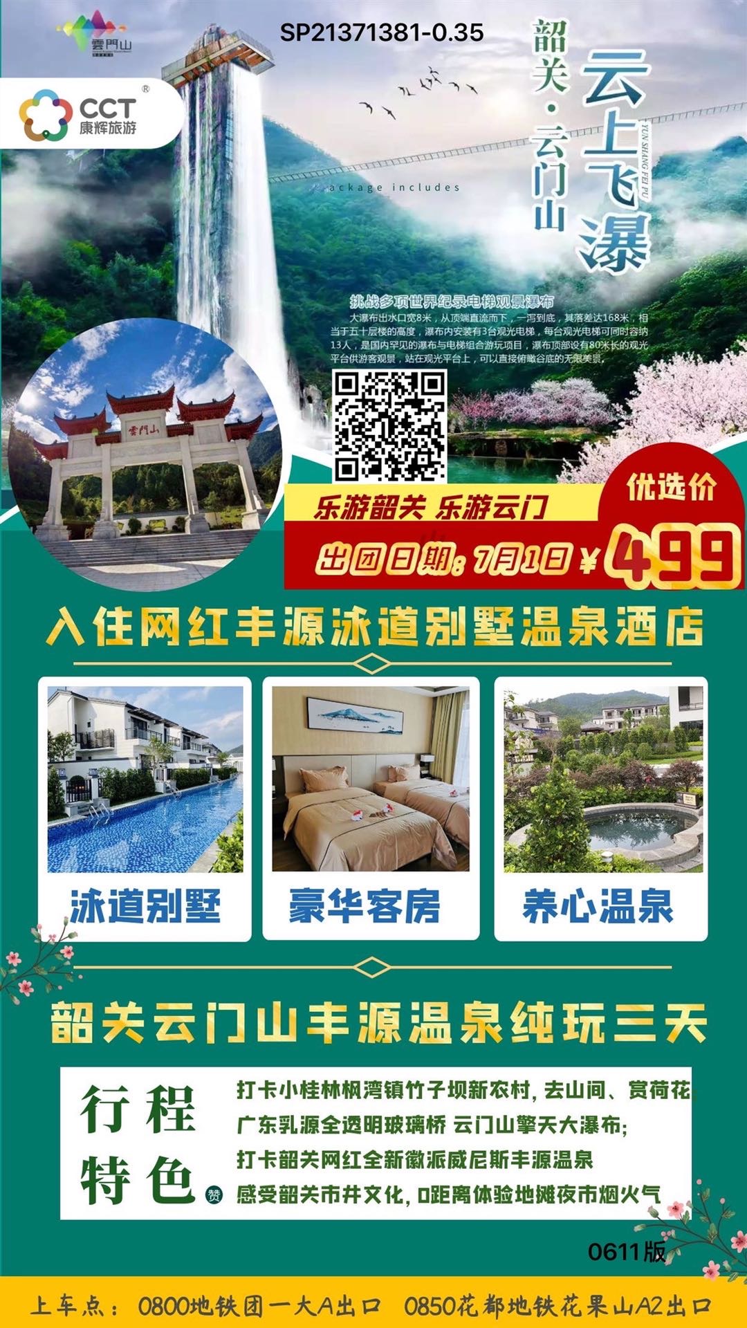 第一天:集合地點>韶關>云門山玻璃橋>云門山擎天瀑布 >精品酒店