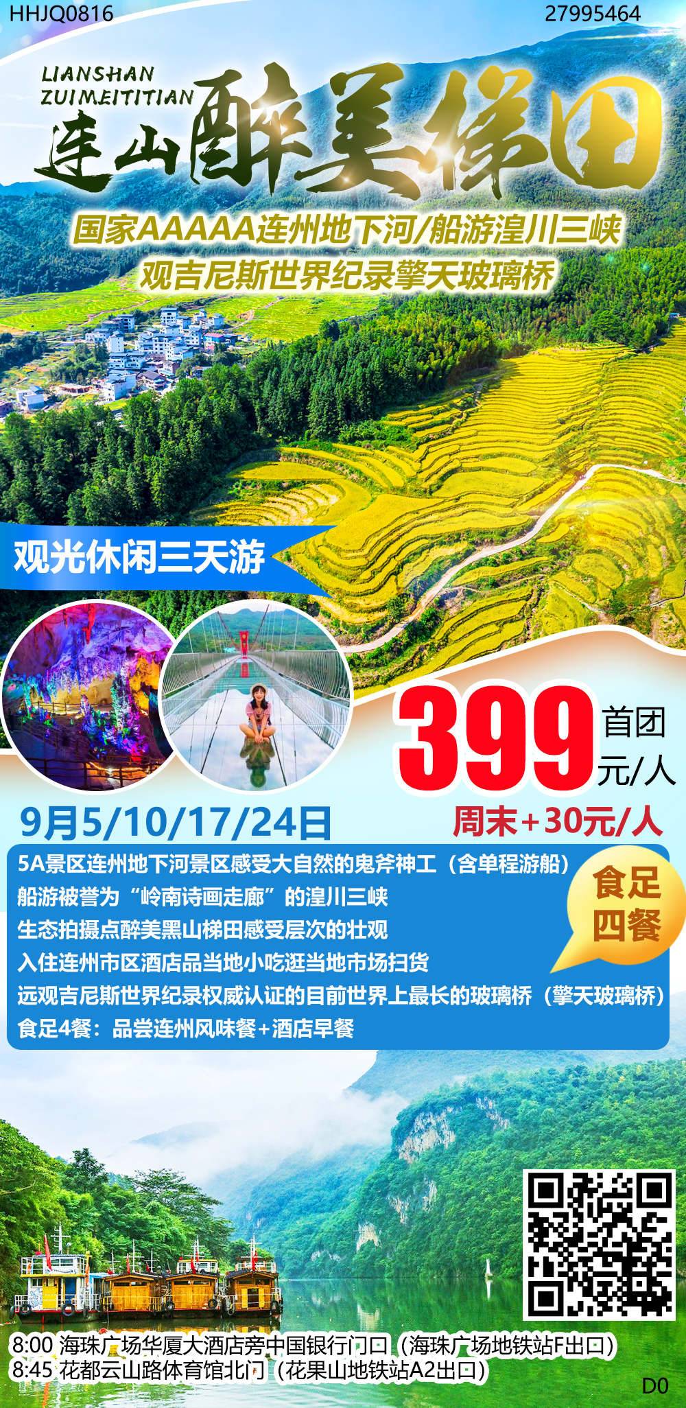 9月5日成團 暢游5A連州地下河3天
