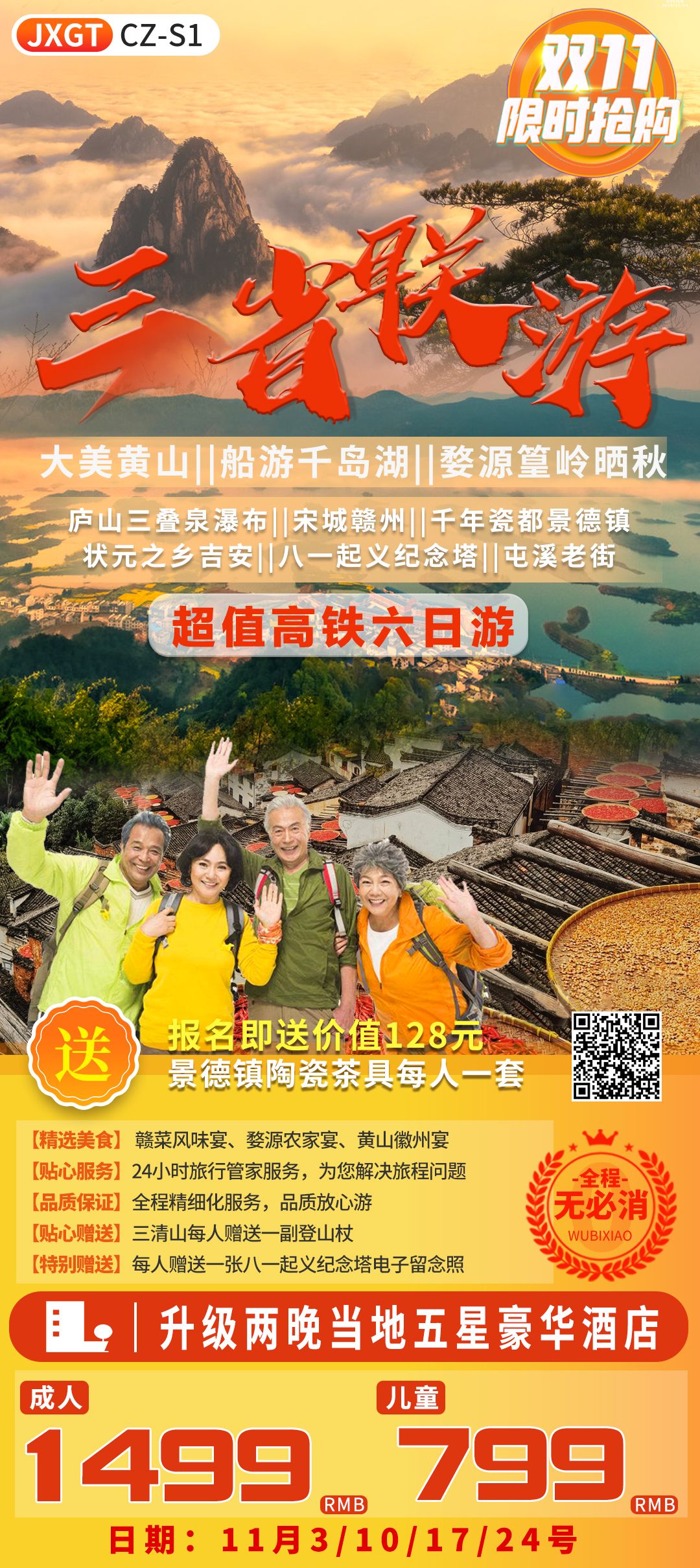? 【三省聯(lián)游】一次游遍贛浙皖三省!雙11限時(shí)秒殺價(jià)??無必消??