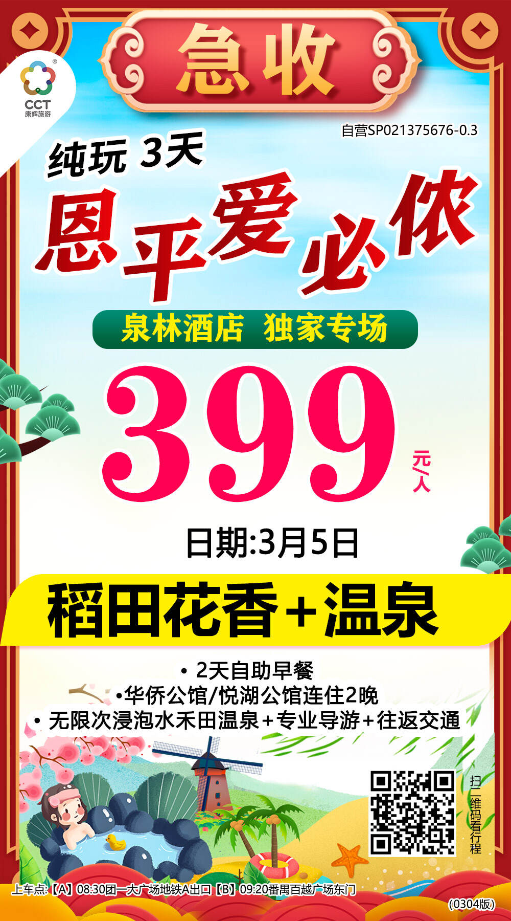 上一篇:經(jīng)律論溫泉+棲湖純玩3天3月15日成團余22位 下一篇:?3月13日成團鐵發(fā) 清遠桃花谷純玩一天游