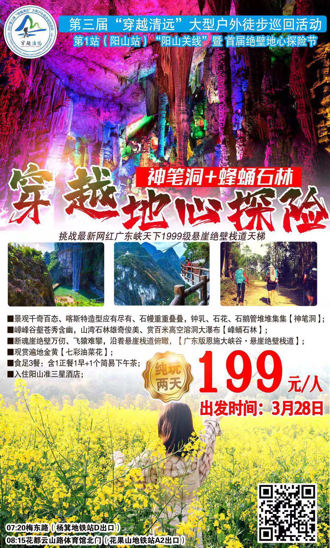 廣州——七彩油菜花——神筆洞+地心探險+峰蛹石林——入住陽山準三星酒店