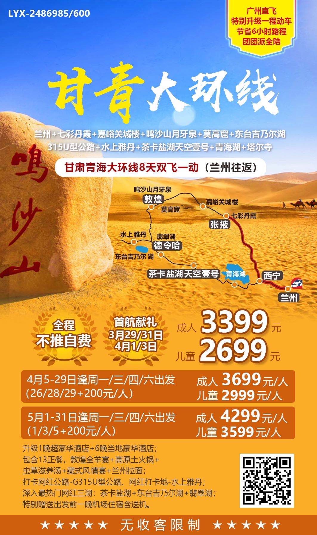甘肅青海大環(huán)線雙飛8天全景無(wú)憾!廣州往返,全程不推自費(fèi),拒絕全國(guó)大散拼