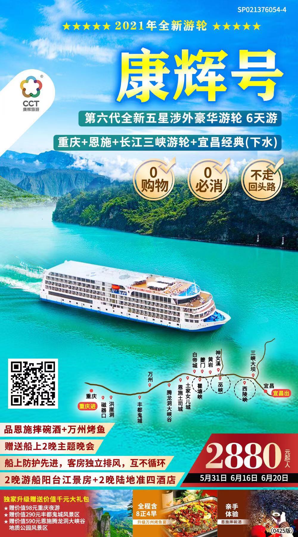 康輝號】廣州出發(fā)重慶+恩施+長江三峽游輪+宜昌經(jīng)典(下水) 單動單臥6天游