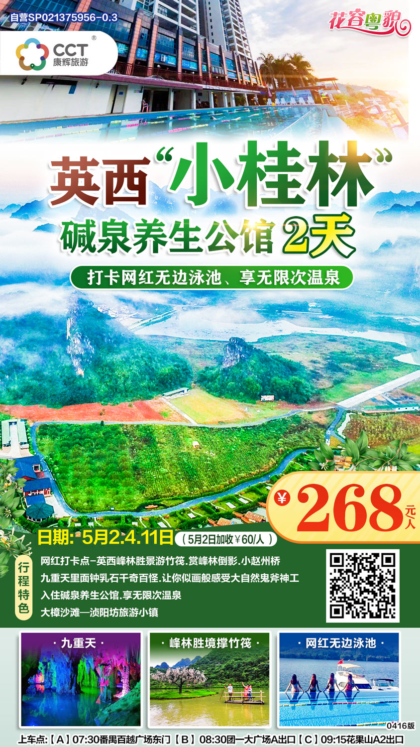 【英西+堿泉】廣州往返清遠(yuǎn)峰林勝境、九重天七彩溶洞、泡堿性溫泉二天跟團(tuán)游