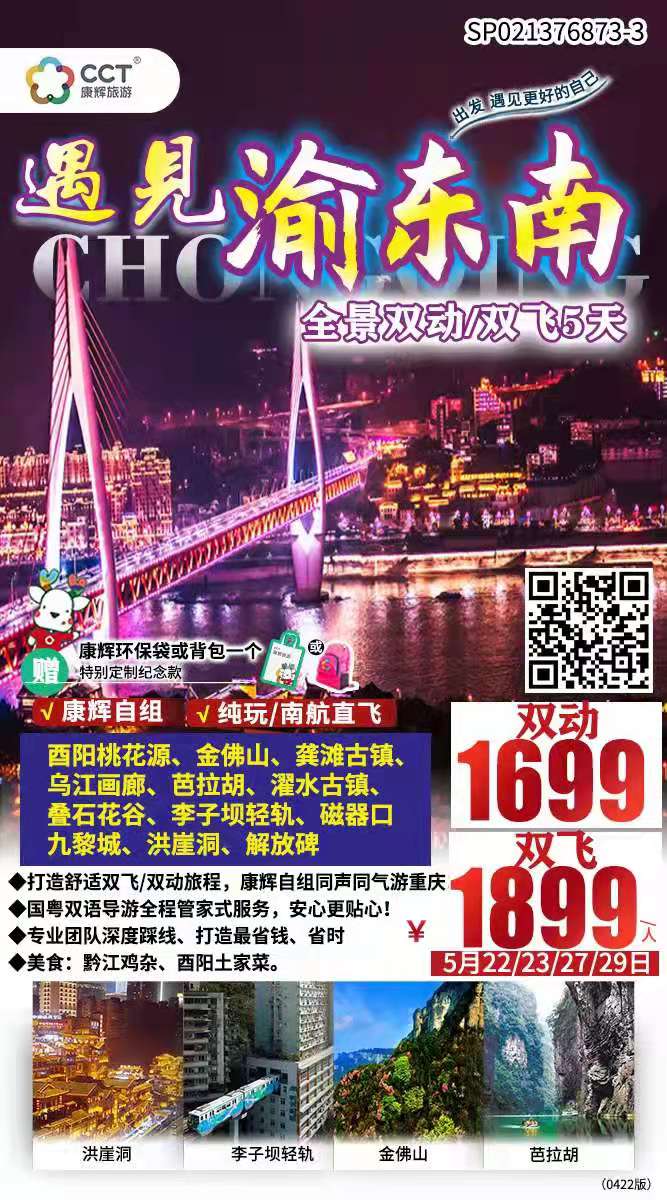 ◆打造舒適雙飛/雙動(dòng)旅程,康輝自組成團(tuán)同聲同氣游重慶!