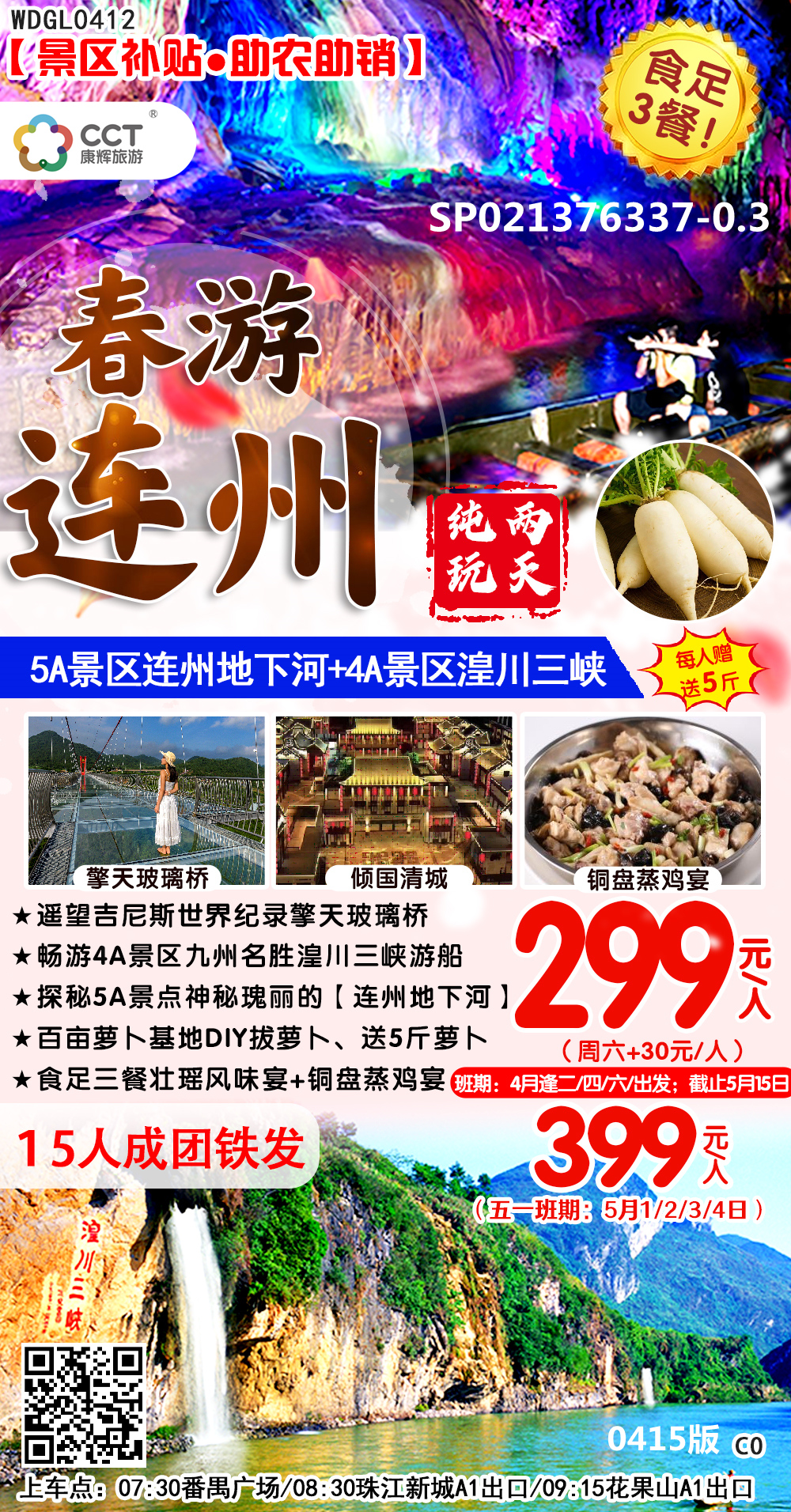 【地下河-助農(nóng)助銷】廣州往返清遠(yuǎn)連州地下河+湟川三峽二天跟團(tuán)游