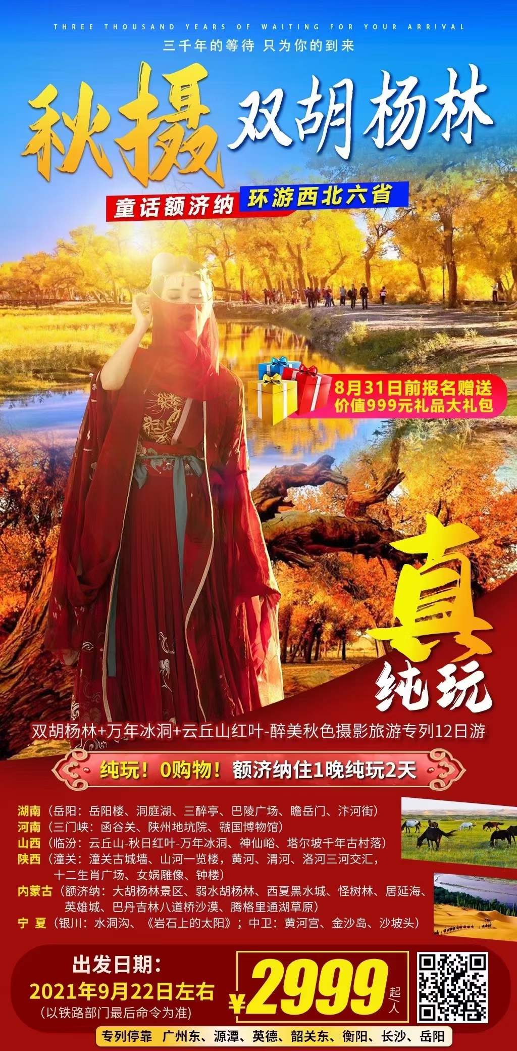 【秋攝·雙胡楊林12日空調(diào)旅游專列,9月22日左右(以鐵路命令為準(zhǔn))