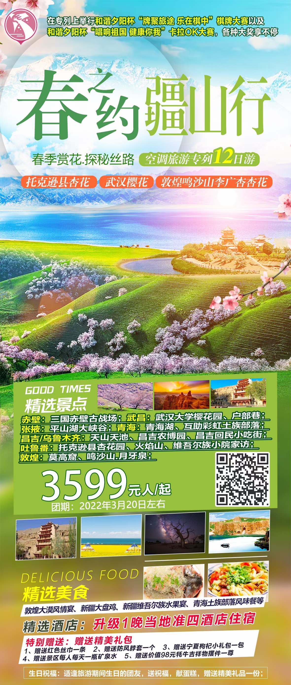 專(zhuān)列預(yù)售2022【春之約疆山行】空調(diào)旅游專(zhuān)列12日游