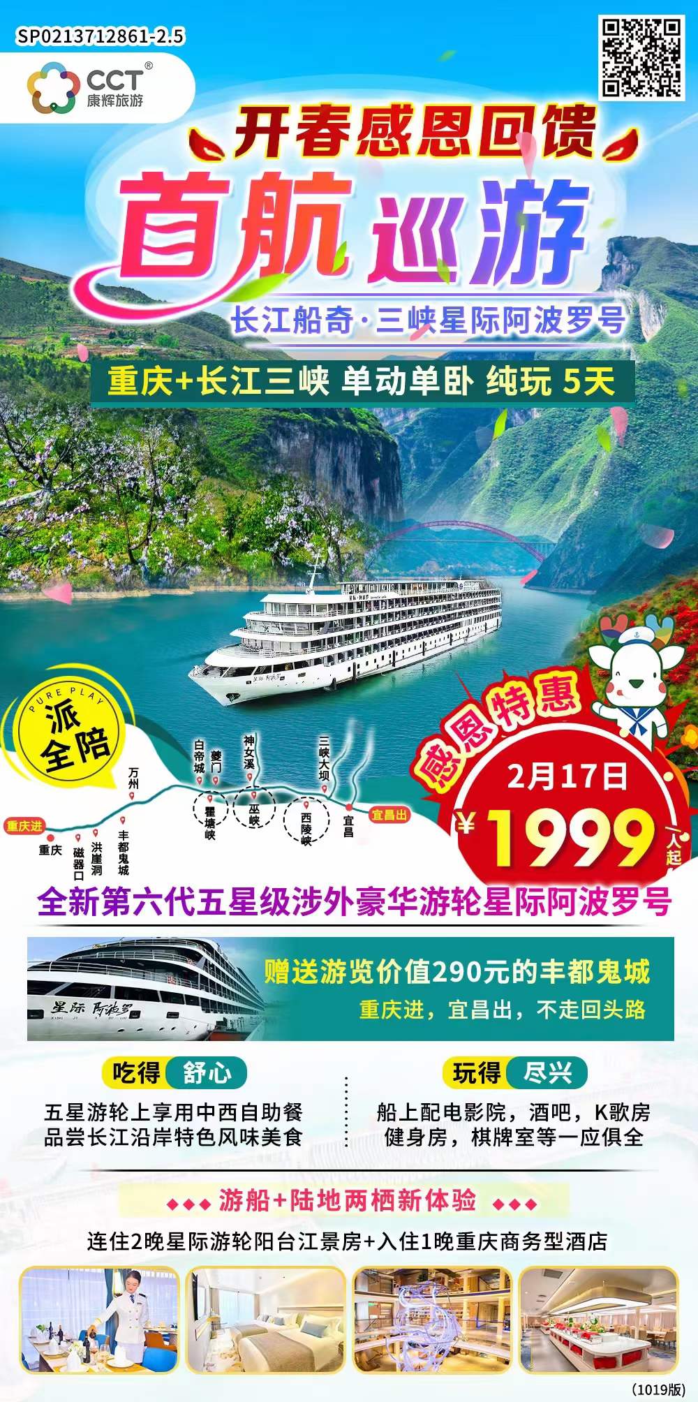 【長(zhǎng)江船奇】星際阿波羅游船廣州重慶+長(zhǎng)江三峽5天游 單動(dòng)單臥(重慶進(jìn),宜昌出)