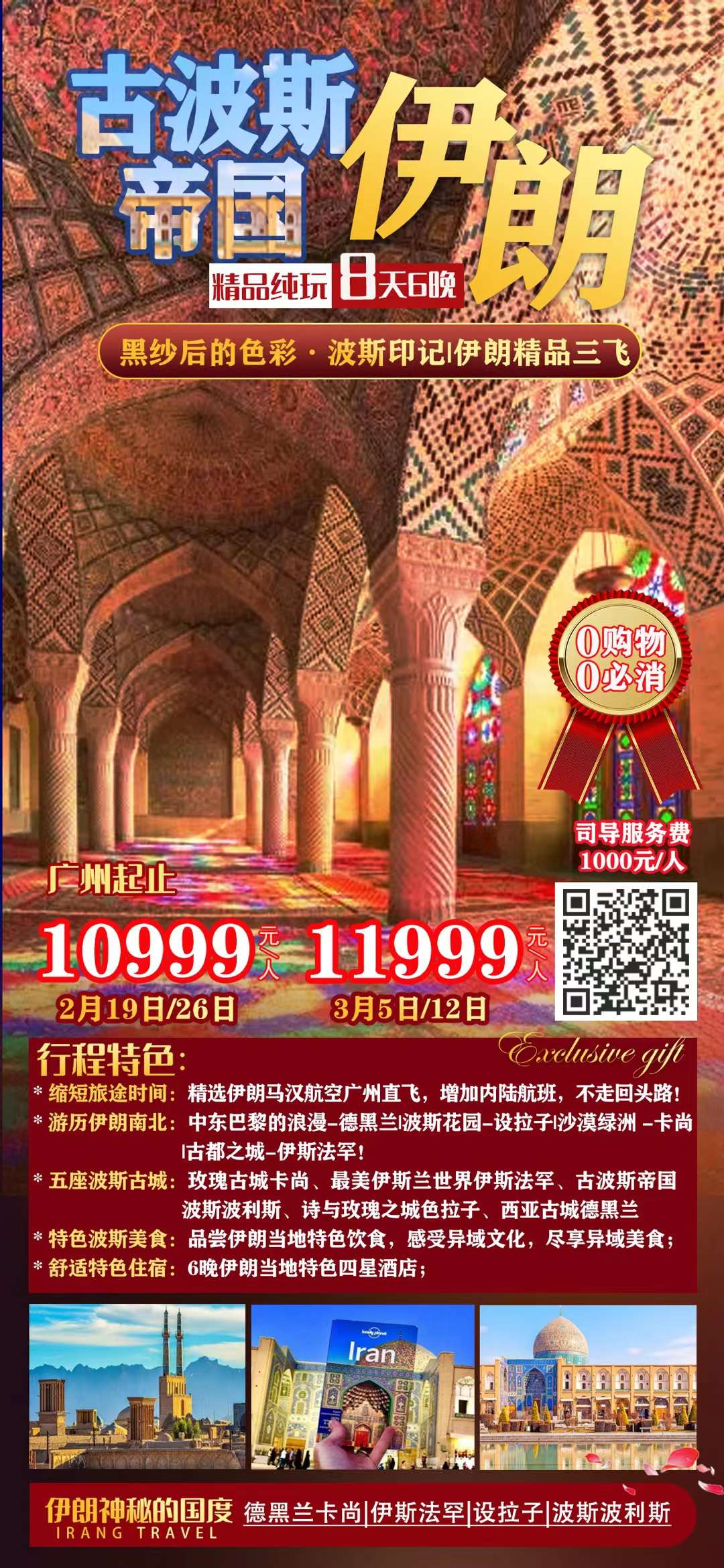 【古?斯波?帝國·波斯印記·伊?一朗?地三飛.精?純品?玩8天6晚】?