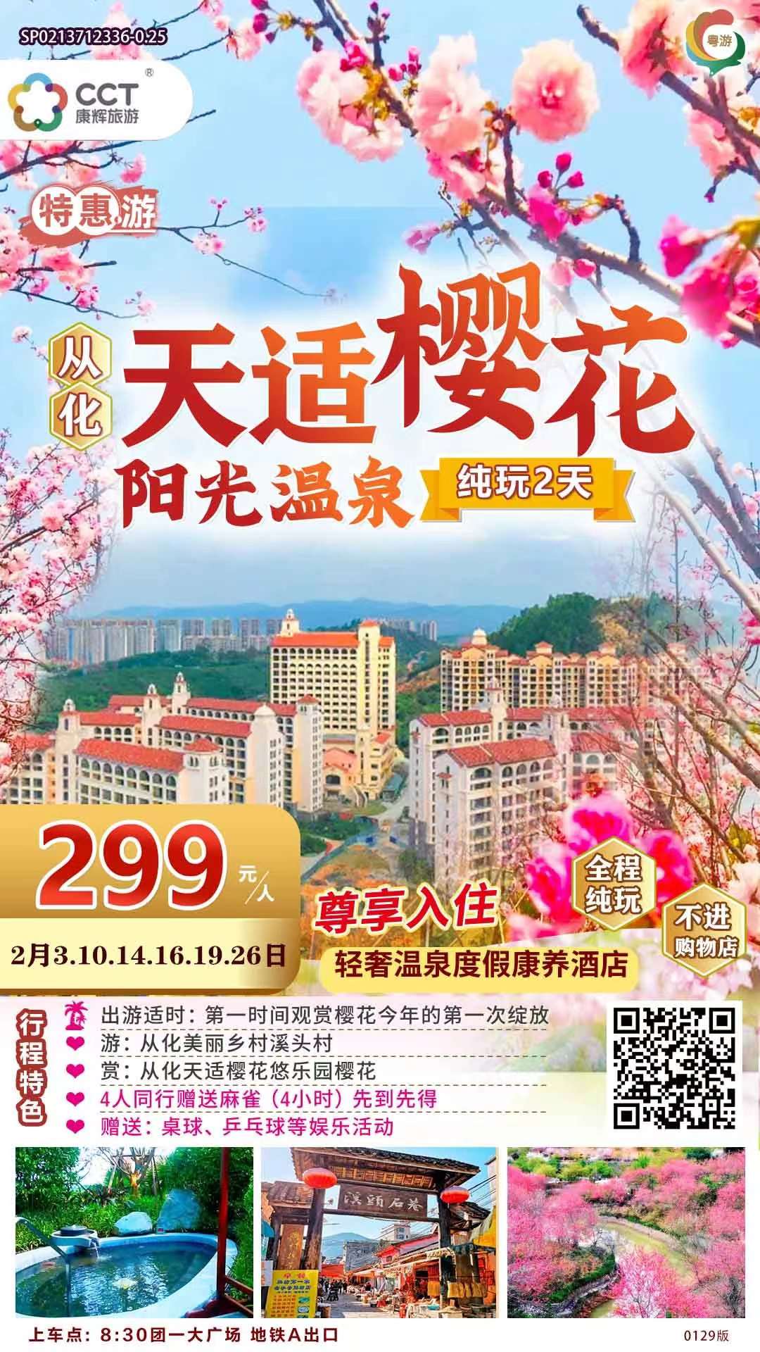 {櫻花季}從化美麗鄉(xiāng)村溪頭村*探索在天適櫻花園*陽(yáng)光人家溫泉度假酒店純玩2天