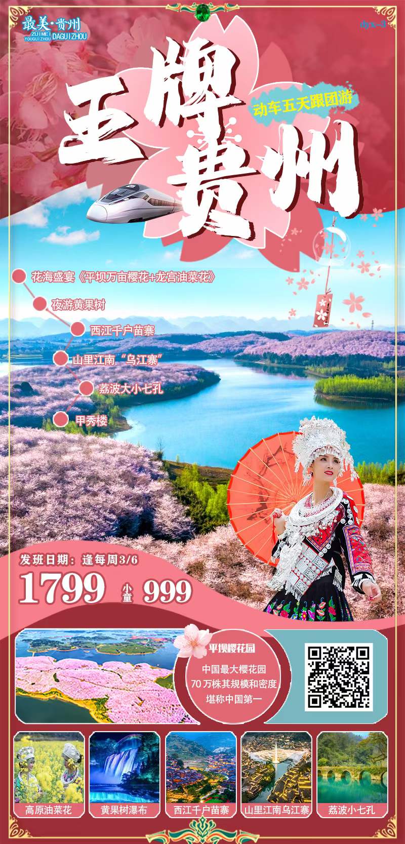 【王貴牌?州】2月25首發(fā)萬畝櫻花、梯油田?菜花、黃樹果?瀑布、大小七孔、烏江寨、西江千苗戶?寨