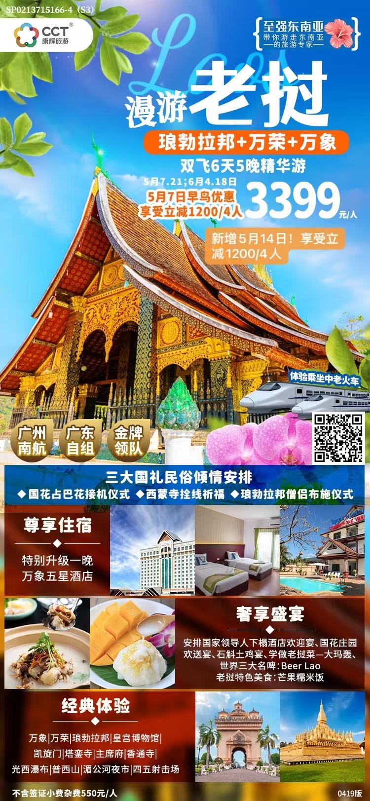 ★ 特色交通:廣州直飛萬象,雙飛雙動,體驗“一帶一路”中老鐵路