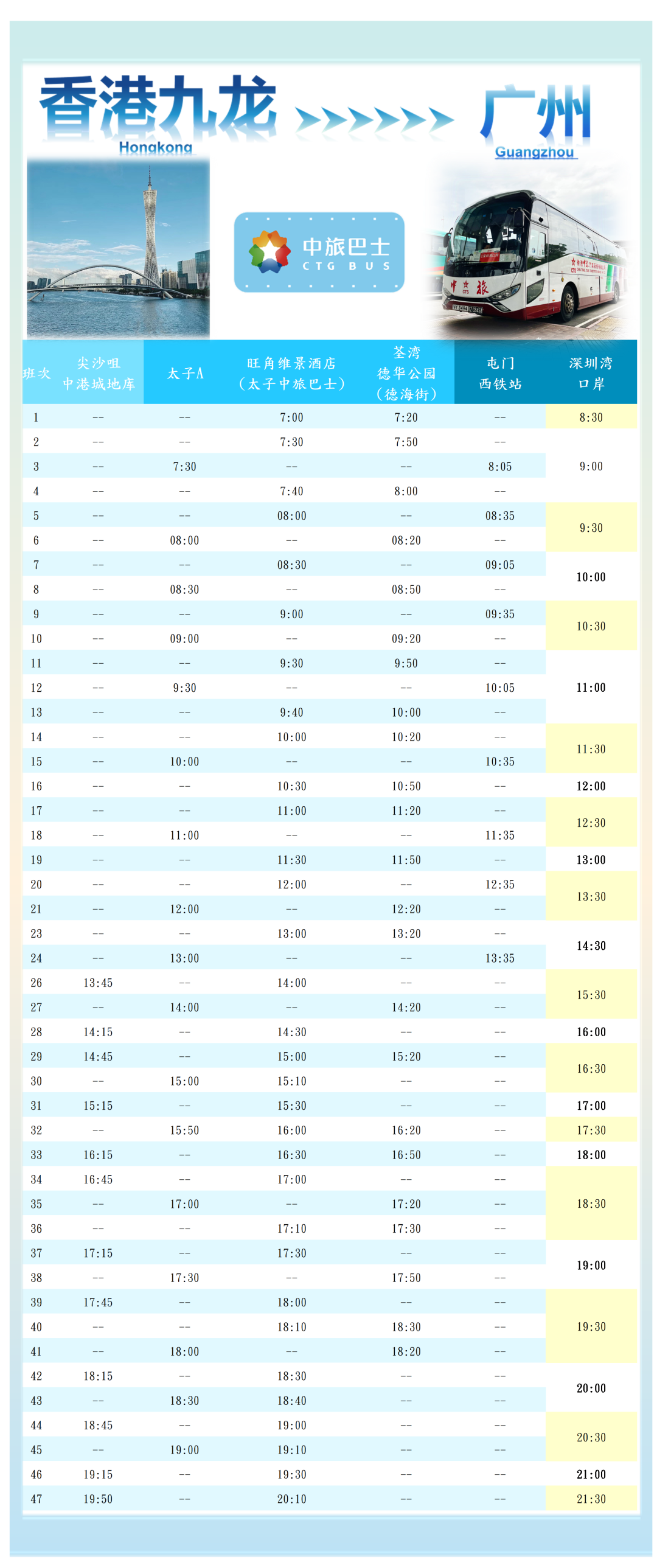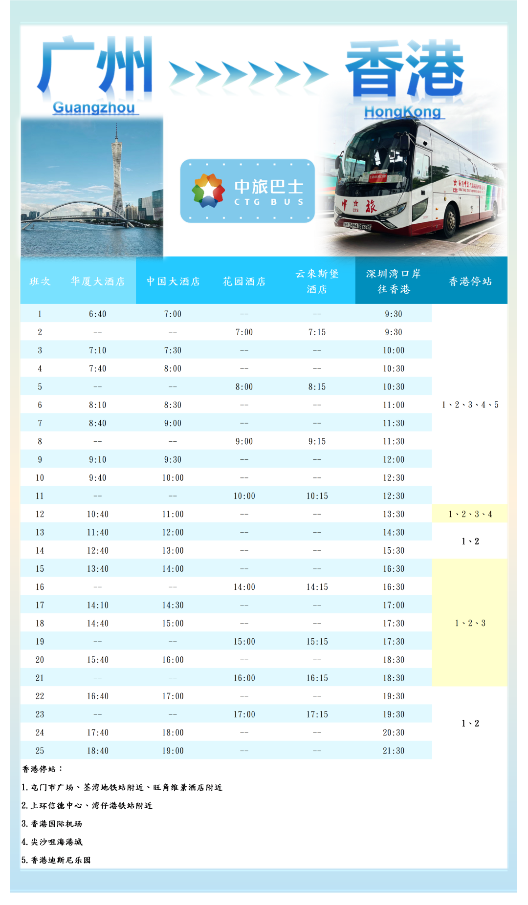 2023廣州到香港巴士時(shí)刻表(中旅巴士):