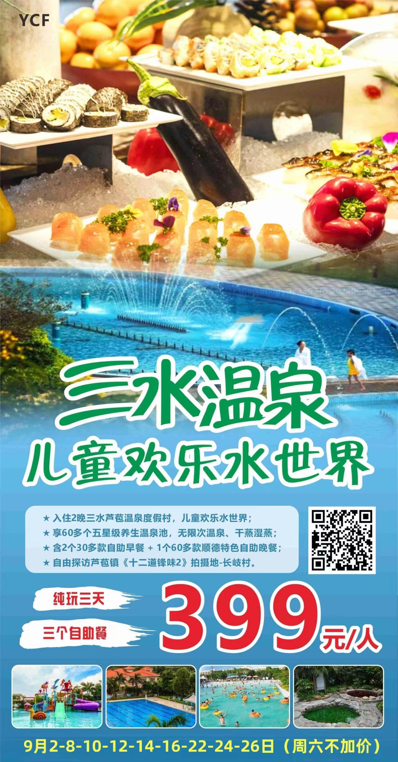 ?五星三水溫泉、兒童歡樂水世界、三個(gè)豪華自助餐、純玩三天399元(周末不升價(jià))