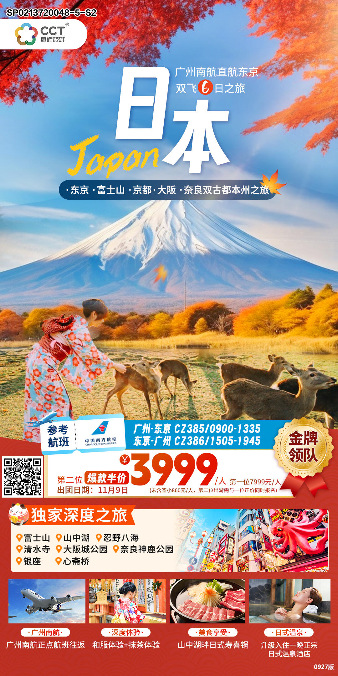 景點(diǎn) :富士山、山中湖、忍野八海、清水寺、大阪城公園、奈良神鹿公園、銀座、心齋橋