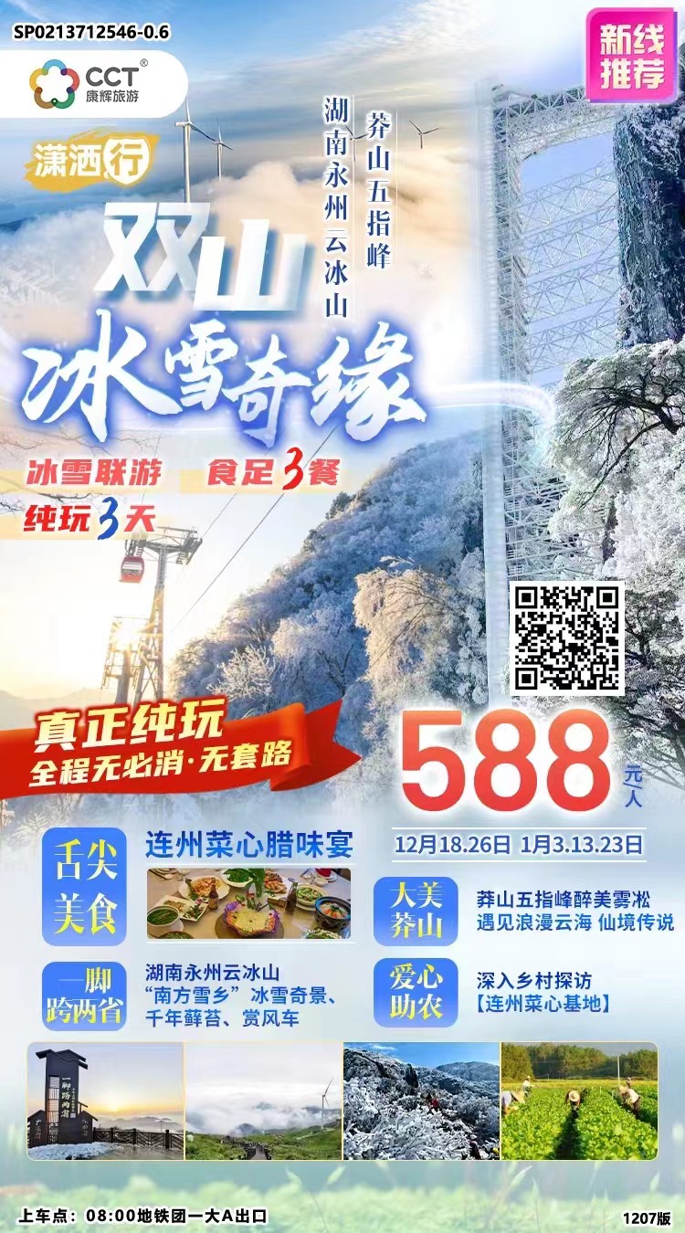瀟灑行】【雙山冰雪奇緣】廣州往返湖南永州云冰山+莽山五指峰の冰雪聯(lián)游純玩3天