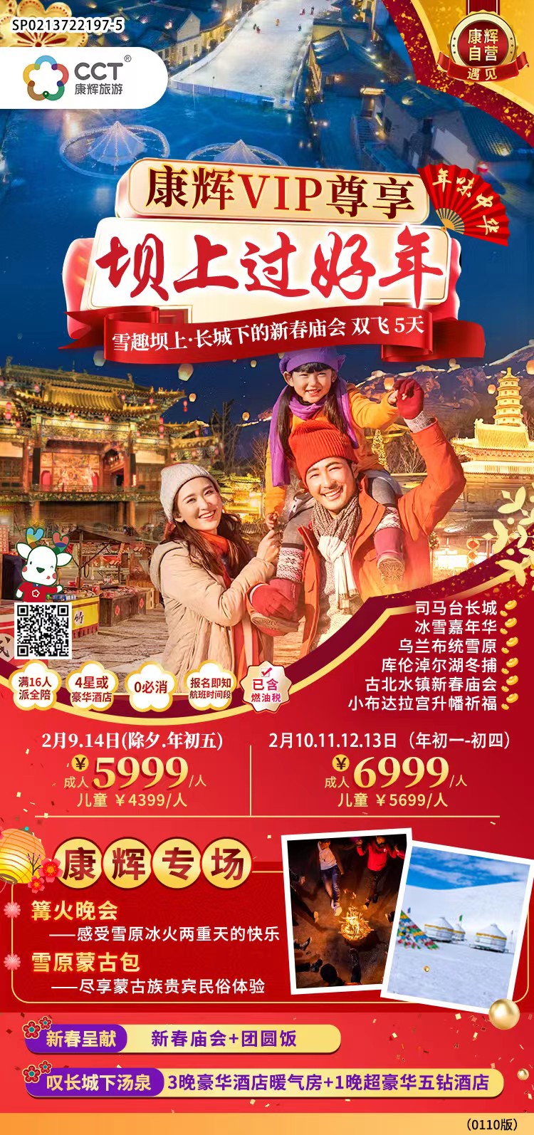 <遇見>廣州北京天津雙飛,雪趣壩上泉暖古北雙飛5天跟團游,冬游純玩