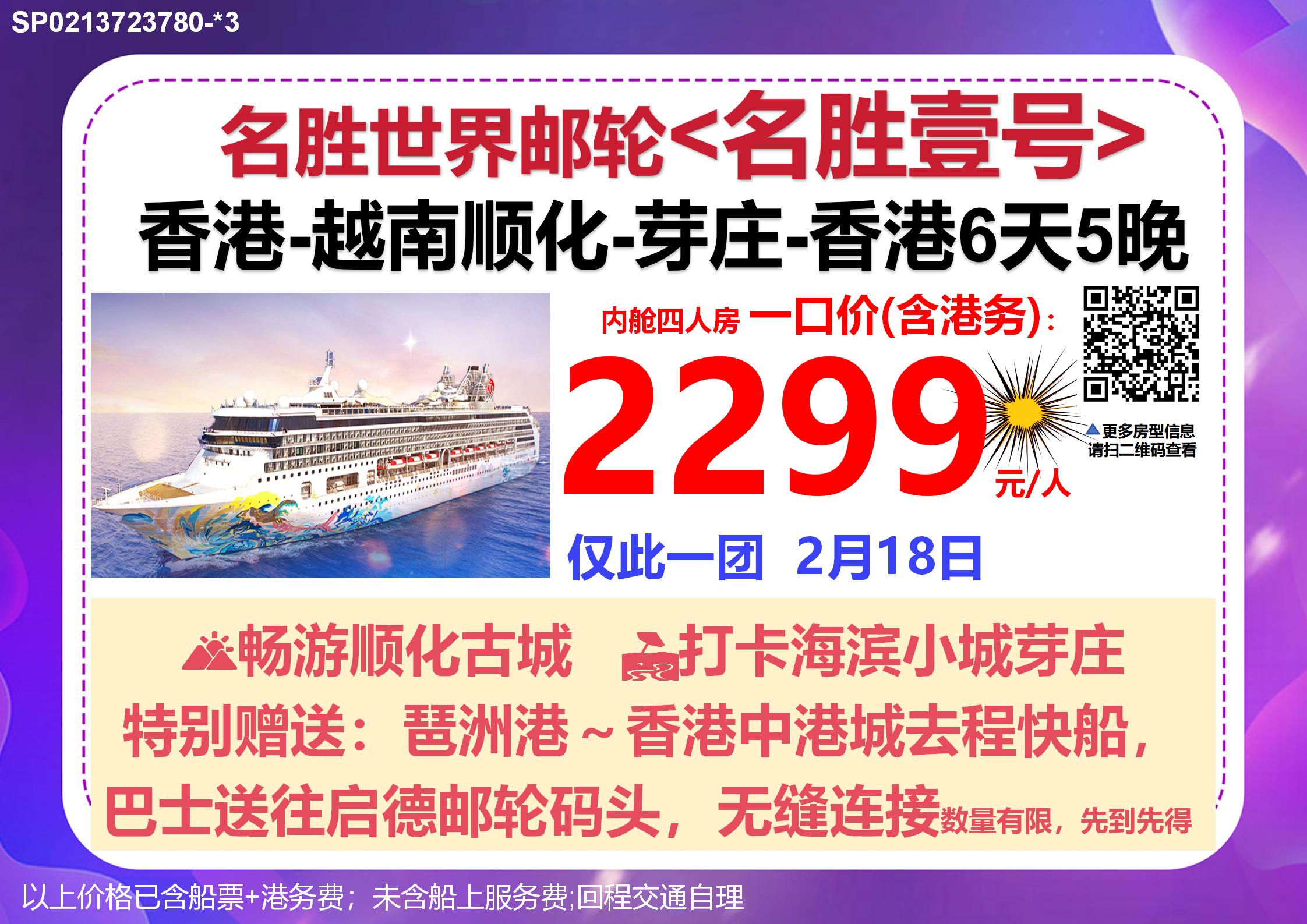 香港啟航~【名勝世界&壹號(hào)郵輪】越南6天悠閑假期2月18日(大年初九)出發(fā)