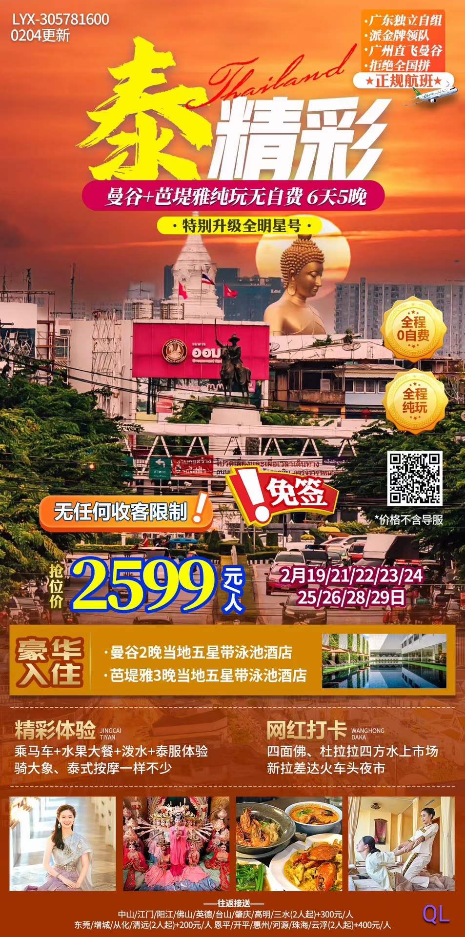特別升級全明星號,泰國國際人妖表演秀、泰式古法按摩