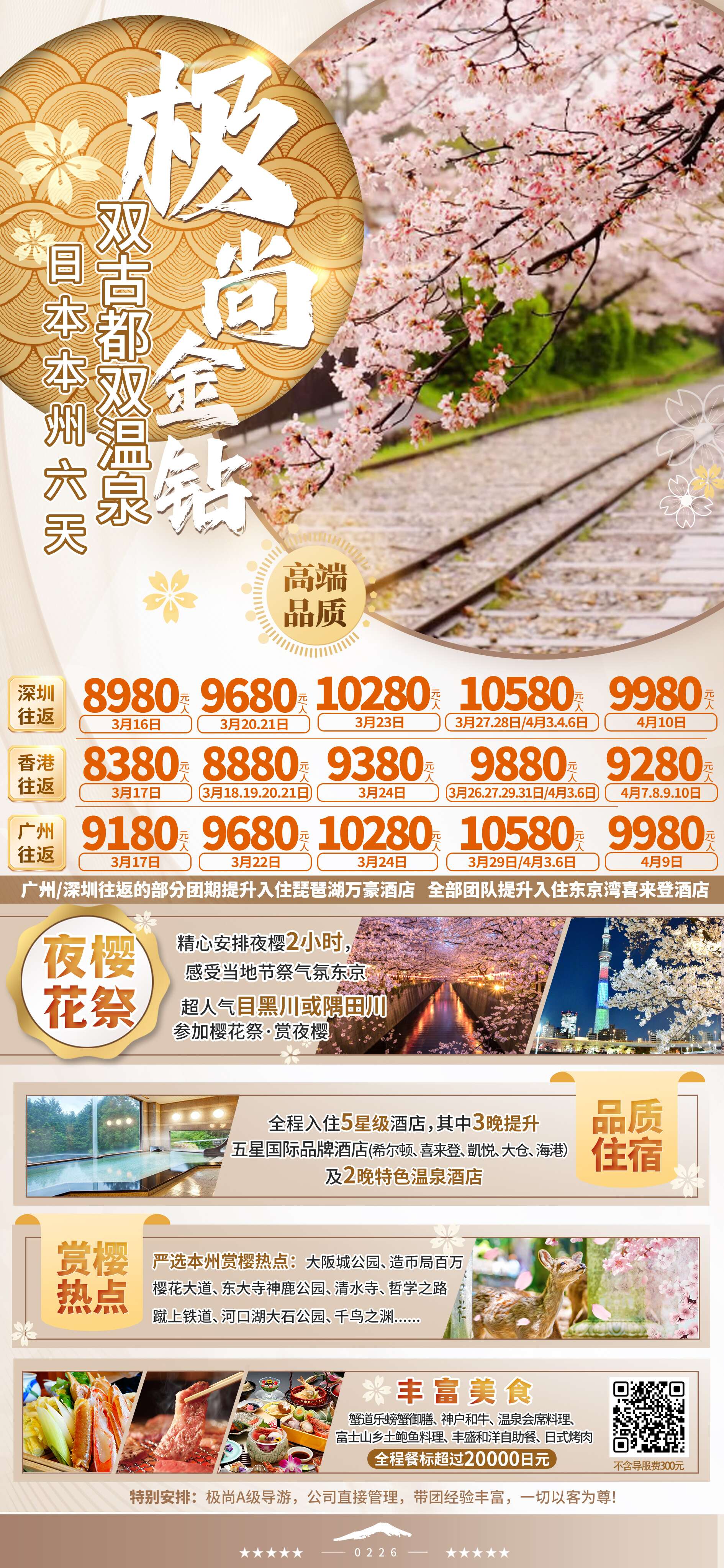 來日本賞夜櫻《日本雙古都雙溫泉五星國際金鉆6天游