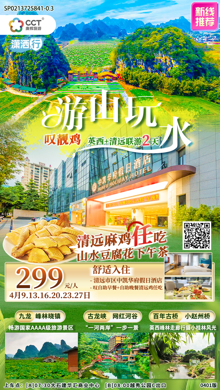 【游山玩水嘆靚雞】廣州往返英西峰林、清遠(yuǎn)麻雞任吃、古龍峽一河兩岸純玩2天
