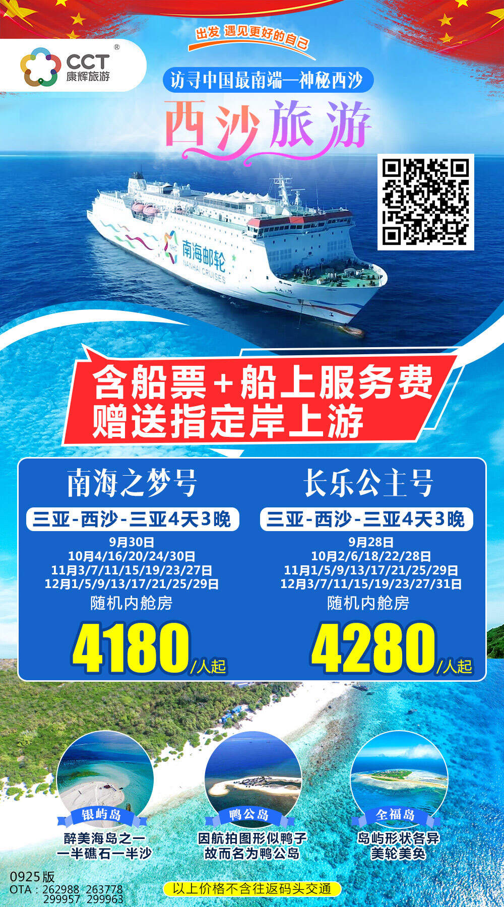 愛國之旅,美麗的西沙三亞-?銀嶼島-?全富島-鴨?公?島-三亞 ?4天3晚