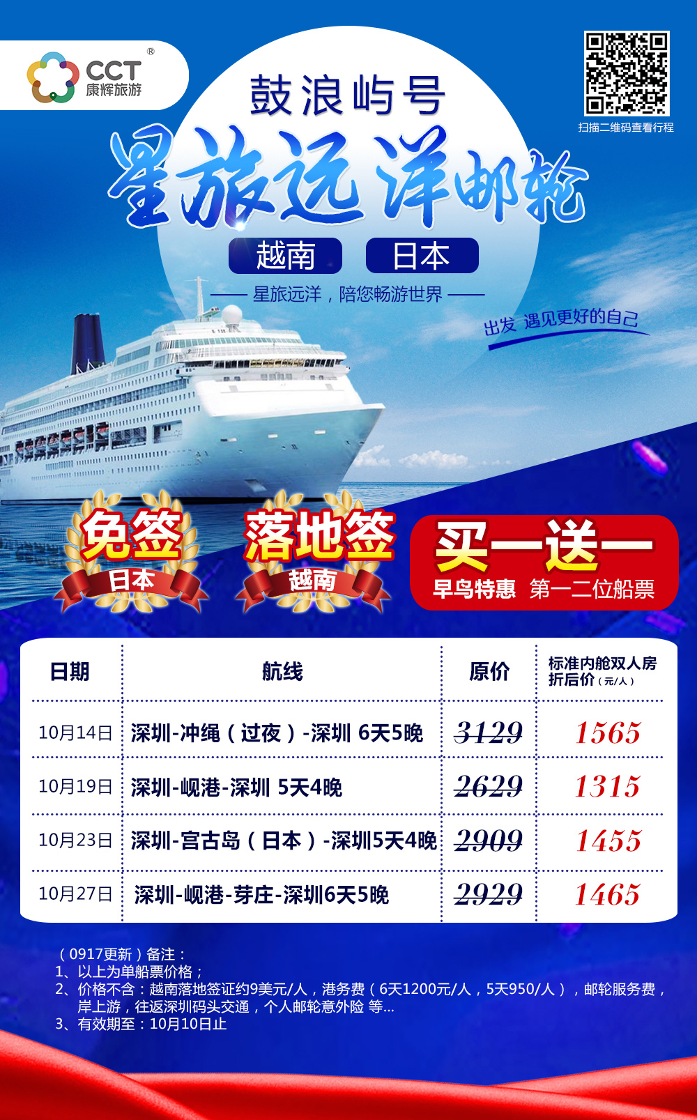 星旅遠(yuǎn)洋郵輪~鼓浪嶼號 10月多個出發(fā)日期