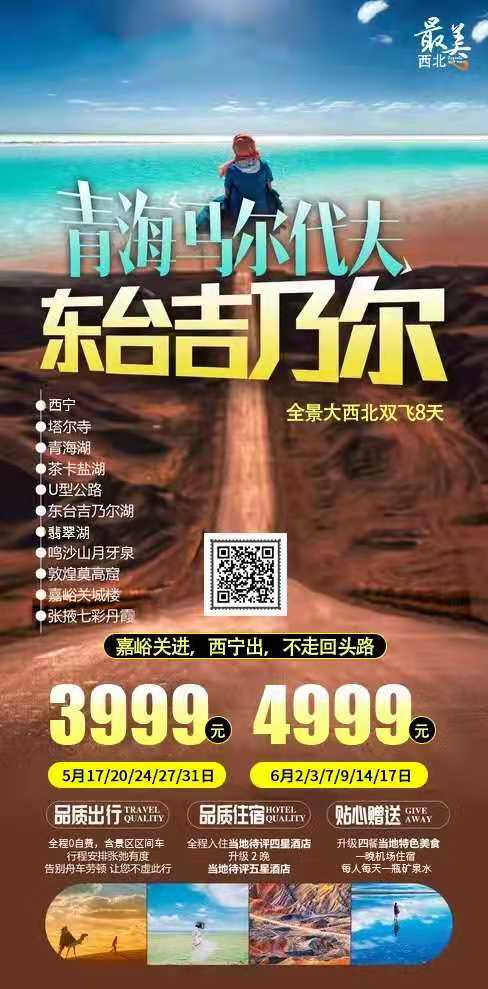 超值禮包:贈(zèng)送價(jià)值1880元烤全羊+價(jià)值1880西北特色篝火晚會(huì)+價(jià)值238元莫高窟A類票+價(jià)值280元回道張掖表演+價(jià)值120元嘉峪關(guān)城樓參觀