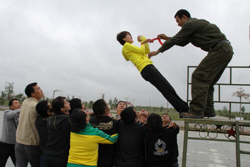 項(xiàng)目介紹: 團(tuán)隊(duì)拓展的壓軸項(xiàng)目。在高4.2米的木墻面前,公司所有員工通過(guò)搭人梯的方式全部到達(dá)頂端。共同的勝利,在于每一位員工全心全力地付出――甘為人梯,見(jiàn)證整個(gè)團(tuán)隊(duì)的成長(zhǎng)。經(jīng)過(guò)一天的培訓(xùn),參訓(xùn)團(tuán)隊(duì)已經(jīng)反復(fù)演練應(yīng)對(duì)難題的方法和能力,在團(tuán)隊(duì)內(nèi)部已經(jīng)出現(xiàn)了智者出謀劃策、領(lǐng)導(dǎo)者果斷決策、執(zhí)行者堅(jiān)決服從等一系列運(yùn)行機(jī)制。