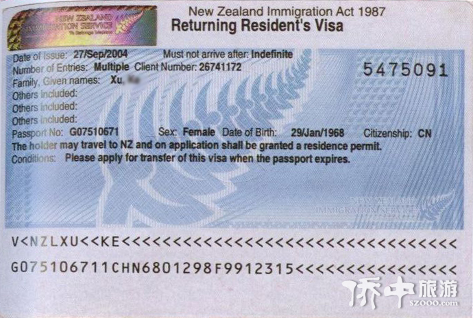 新西蘭簽證圖片